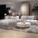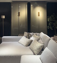 In de showroom uitgevoerd in de kleur platinum, en met een lichtbronnen pakket van 3 GU10 spots, en blik vangende, met de hand vervaardigde E27 bulbs met ‘halo’-effect in twee verschillende afmetingen.